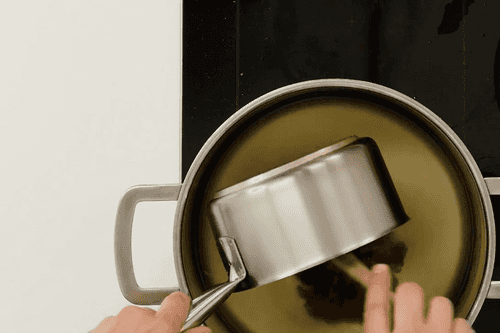 Pour oil into a thick-bottomed saucepan.