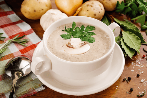 Cheese cream soup with champignons