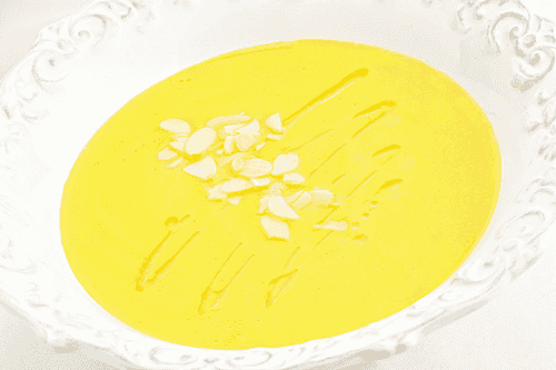 Pass the obtained mixture through a blender to achieve a homogeneous consistency. Add salt and pepper to taste. When serving, add a little cream. Serve with croutons. Garnish with almond flakes.