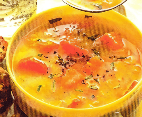 Vegetable soup with pumpkin and lentils is a true symphony of Italian cuisine flavors. It combines the sweetness of pumpkin, the richness of bacon, and the aroma of spices to create a harmonious and warming dish. Historically, such soups were made in rural regions of Italy using seasonal vegetables and legumes for a hearty meal. Red lentils give the soup thickness and a nutty hue, while rosemary and cumin fill it with a spicy, slightly woody aroma. It’s an ideal choice for cool evenings, served with crusty bread or grated Parmesan. It is not only nutritious but also healthy due to the fiber, vitamins, and protein contained in its ingredients.