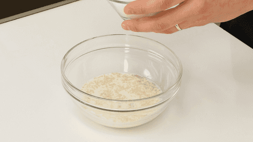 Mix warm milk, yeast, and a teaspoon of sugar, and let it sit for 5 minutes until the yeast activates and foam appears on the surface.