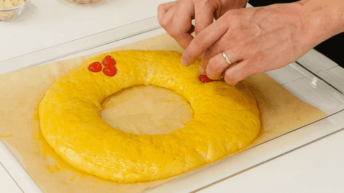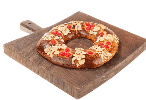 Roscón de reyes, which means "Royal bread", is a ring of pastry with nuts and dried fruits.