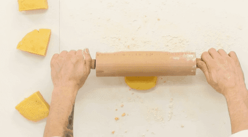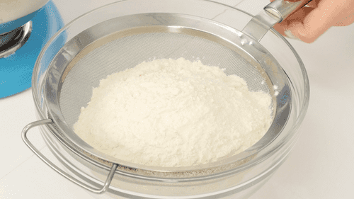 Gradually add sifted flour and knead a uniform dough. Wrap the dough in plastic wrap and refrigerate for half an hour.