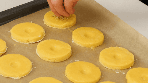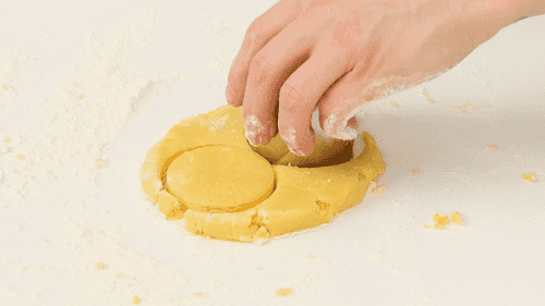 Cut out round cookies and place them on a baking sheet lined with parchment paper.