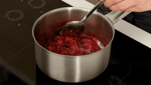 Pour cherries and sugar into a saucepan, set on low heat, and cook for 15 minutes.