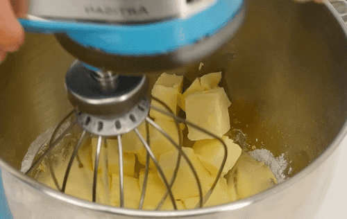 Whisk the yolks with powdered sugar until white, add softened butter, and mix until smooth.