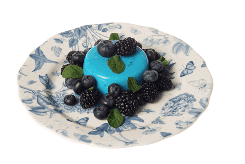 Blue panna cotta is an exquisite dessert from Italian cuisine that captivates not only with its delicate texture but also with its stunning color. This airy creamy masterpiece was born in Piedmont and has since won the hearts of sweet lovers worldwide. In its classic form, panna cotta enchants with creamy softness, but in this version, it takes on a mysterious blue glow thanks to a drop of food coloring. The aroma of natural vanilla intertwines with a light sweetness, creating a harmony of flavors. It is best served chilled, garnished with fresh blueberries and blackberries that add a slight tartness and mint leaves that refresh each bite. This dessert is perfect for special occasions when you want to impress guests with something unusual and elegant.