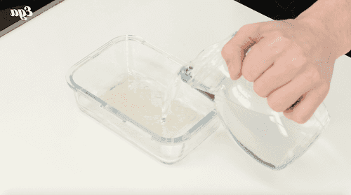 Pour gelatin with cold water and let it sit for 5 minutes.