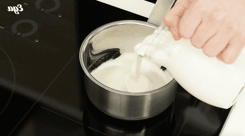 Extract the seeds from the vanilla pod and place the seeds and pod in a saucepan, pour in cream, add sugar, bring the mixture to a boil and remove from heat.