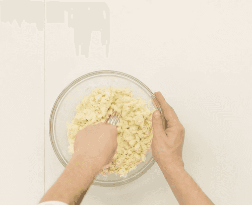 Mix. The mass should be heterogeneous, with lumps of cheese.