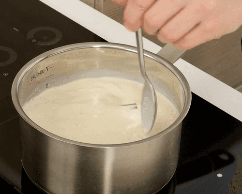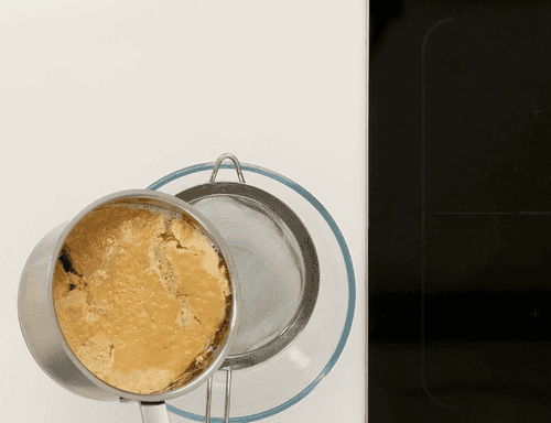 Stir and leave on low heat for 2 hours. The milk should curdle and take on an amber color.