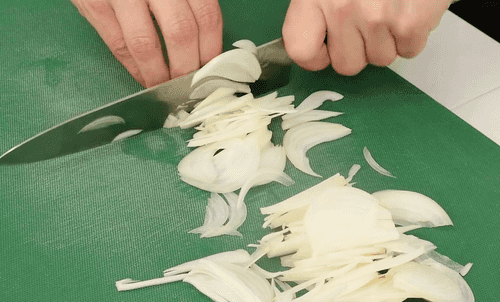 Add sliced onion and sugar. Fry, stirring, for 10-15 minutes until the onion takes on a caramel color.