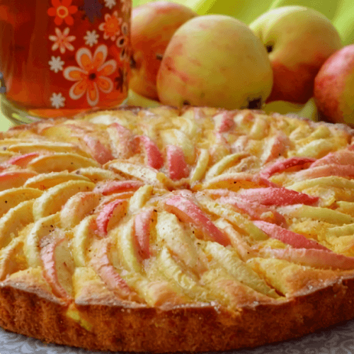 Fluffy apple charlotte is a classic dessert of German cuisine, rooted in traditional apple pies served to guests during family tea gatherings. Its airy texture and delicate aroma of cinnamon, nutmeg, and vanilla make this pie a refined treat perfect for a cozy evening. Apples slightly caramelized during baking add a refreshing tartness to the charlotte, creating a harmonious balance of flavors. This pie pairs perfectly with a cup of fragrant tea or coffee, and a light dusting of powdered sugar adds the finishing touch. The simplicity of preparation makes it a favorite among home recipes, while the variability of ingredients allows for experimentation by adding cocoa for chocolate flavor notes. Fluffy charlotte is not just a dessert but a warm memory of home comfort and childhood taste.