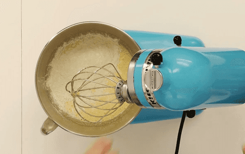 Mix 5 eggs with 190 g of sugar with a mixer until a white foam forms.