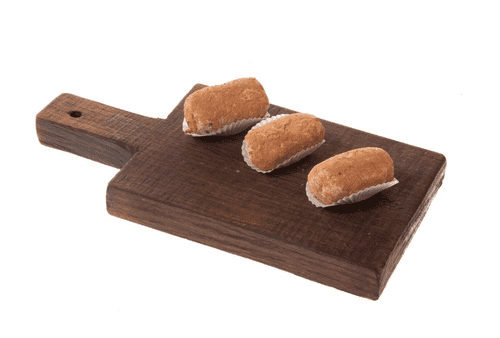 Mix powdered sugar with cocoa and coat the pastries in it.