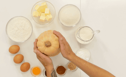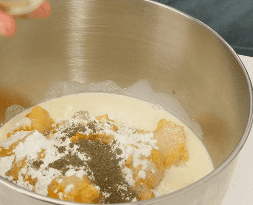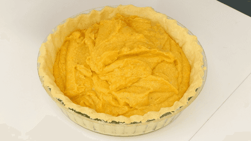 Mix pumpkin puree with eggs, cream, sugar, starch, half a teaspoon of salt, ginger, nutmeg, ground cloves, and black pepper.