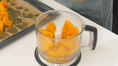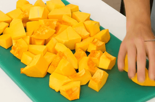 Peel the pumpkin from the skin and seeds, cut into large pieces. Place on a baking tray, cover with foil, and put in an oven preheated to 190 degrees for about an hour.