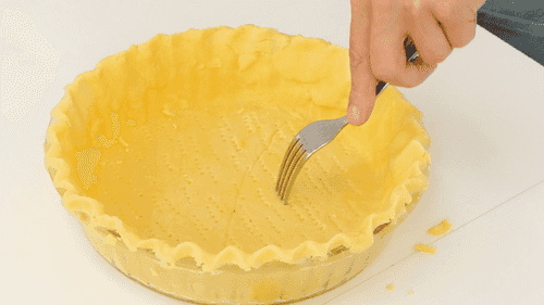 Roll out the dough, place it in a greased baking dish. Prick the dough with a fork.