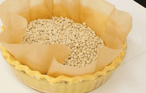 Place baking paper on it and sprinkle with baking beans or regular dry beans. Send to an oven preheated to 190 degrees for 20 minutes.