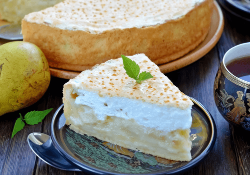 Creamy pear pie with soufflé