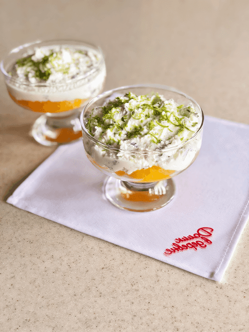 Cottage cheese cream with tangerines and lime aroma is a light and refreshing dessert perfect for warm summer days or cozy evenings. European cuisine has gifted us this airy masterpiece that harmoniously combines the sweetness of tangerines, the tenderness of cottage cheese, and the invigorating scent of lime. The cream turns out silky, while the tanginess of tangerines adds a special freshness. Minty notes complement the overall picture, giving the dessert a subtle fragrance. This cream can be served in glass cups to enjoy its layered structure or used as a filling for baked goods. A great option for a romantic dinner or family celebration where everyone can feel the magic of flavors intertwining in this elegant treat.