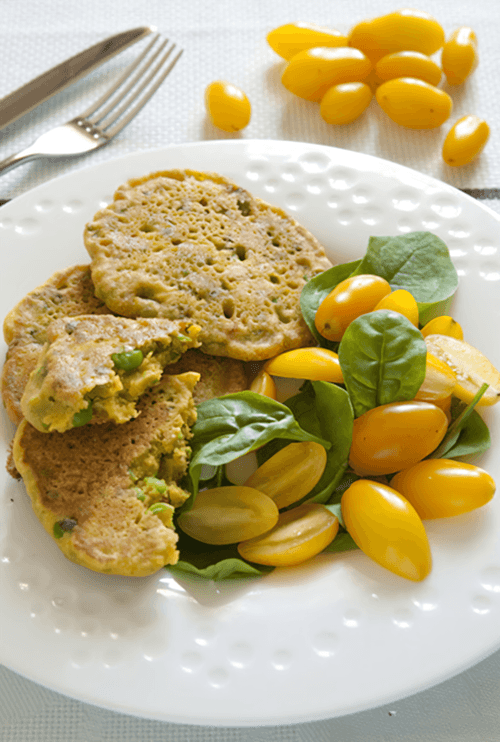 Chickpea flour pancakes with green peas