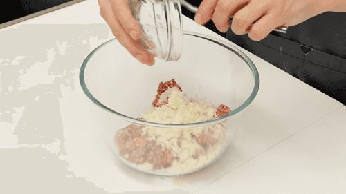 Mix the minced meat with chopped onion, salt, and pepper. If the minced meat is dry, add 1-2 tablespoons of water. Beat the mixed minced meat as for cutlets.