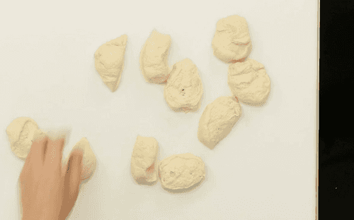 Divide the dough into ten equal parts of 60 grams each and roll them into balls.
