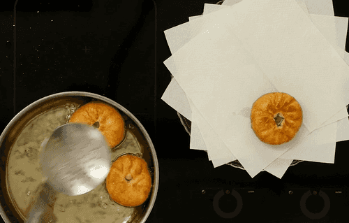 Take the ready fried pies out onto paper to drain excess fat.