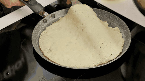 Flip the pancake and fry for another 1-2 minutes on the other side.