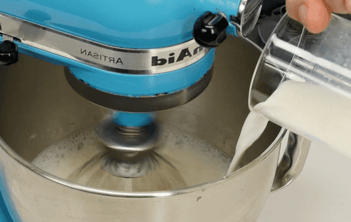 Mix with a mixer and pour in vegetable oil. Put in the refrigerator for 30 minutes.
