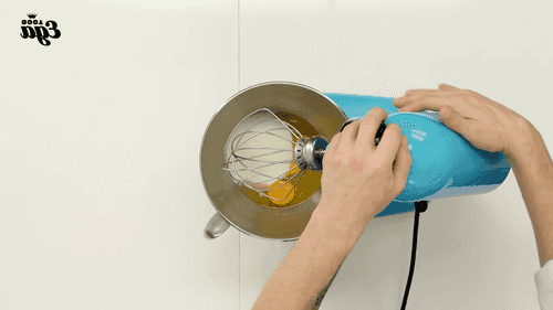 Beat the eggs with sugar and a pinch of salt.