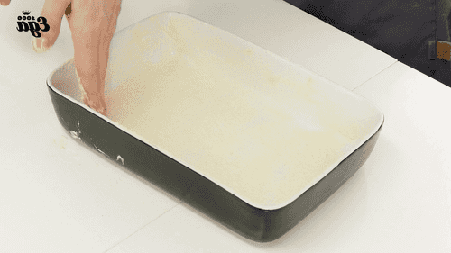 Grease the baking pan with butter and dust with semolina.