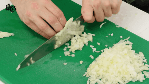 Chop the onion into small cubes, sprinkle with a little salt, and mash it to release its juice.