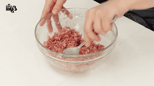 Add minced meat to the onion, a little water, salt, and pepper. The minced meat should be somewhat liquid.