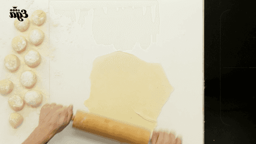 Roll one ball of dough into a thin pancake.