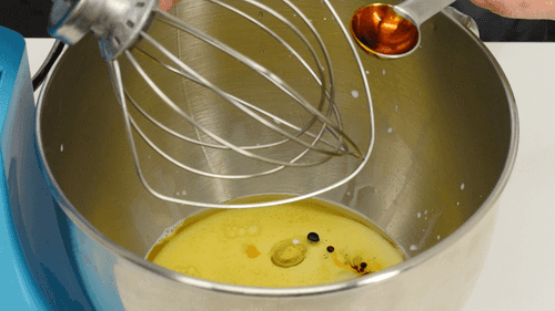 Beat the eggs with milk, vegetable oil, and vanilla.