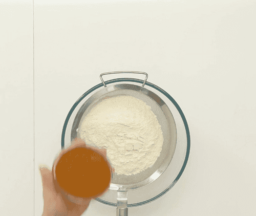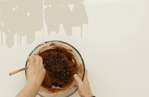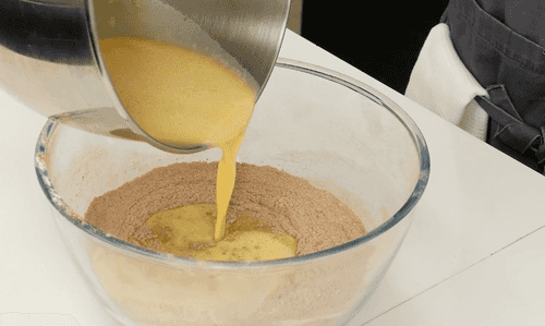 Make a well in the dry mixture, pour in the liquid mixture, and knead the dough with a wooden spoon.