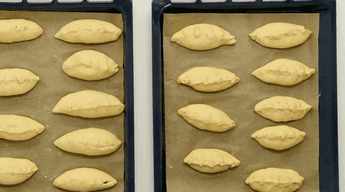 Place the pastries on a baking sheet, cover them with a towel, and let them sit in a warm place for 30 minutes.