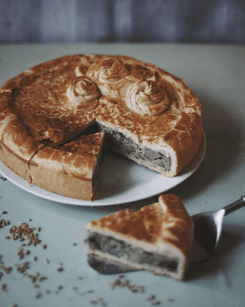 Pie with spelt and chicken giblets