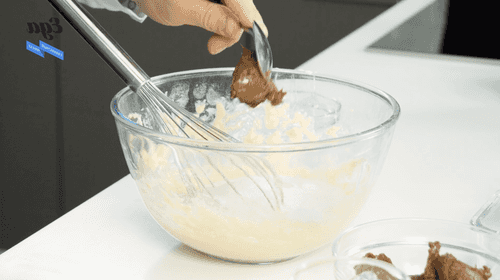 Combine the chocolate mass with the dough and mix until smooth. Pour the dough into fondant molds greased with butter or lined with parchment. Place them in the refrigerator for 15 minutes.