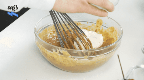 Mix eggs with flour, sugar, and 40 g of boiled condensed milk.