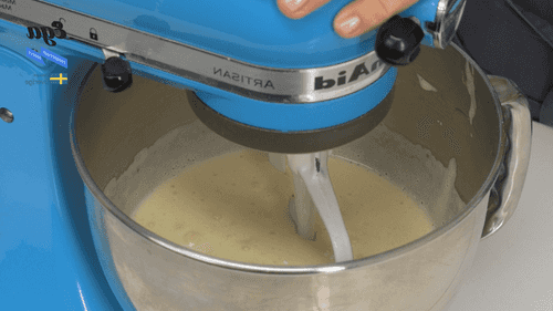 Beat room temperature butter into the cooled vanilla cream with a mixer.