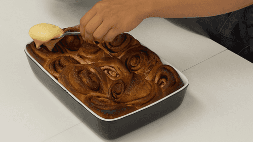 The main thing that distinguishes real cinnamon buns from all other similar ones is the rich soaking of the finished buns with creamy glaze.