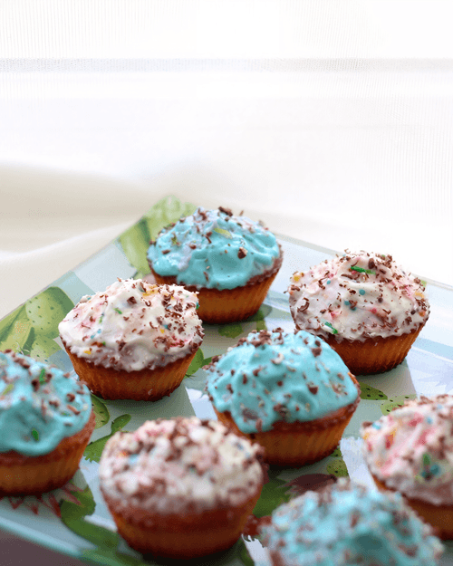 Decorate the cooled cupcakes with sour cream frosting. You can add food coloring and make some cupcakes colorful. Decorate to your taste.