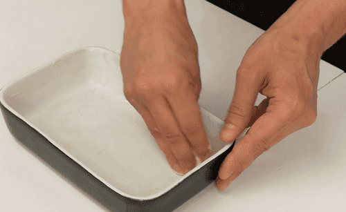Grease the baking dish with butter.