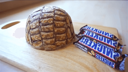 Place the snickers slices inside the bowl-mold.