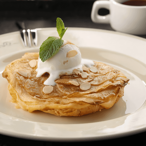 Apple-pear pie with vanilla ice cream is the embodiment of coziness and tenderness. The origins of this dessert trace back to European traditions, where apples and pears were often used in baking. The airy dough infused with the aroma of fruits creates a perfect base for a golden crust with hints of sesame. Vanilla ice cream adds refreshing creamy softness, contrasting with the warm pie. This dessert is perfect for family gatherings as well as festive tables, and its harmony of flavors makes each bite a true delight.