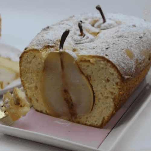 Cottage cheese cake with pear and vanillin is a delicate treat embodying the harmony of flavors and textures. Its roots trace back to European baking traditions, where cottage cheese gives the dough softness and lightness, while pear adds juiciness and subtle sweetness. During preparation, the cottage cheese mixture combines with airy dough, and pears filled with a nut-chocolate mixture create a pleasant surprise effect. Baked at low temperature, the cake becomes moist, infused with fruity aroma and vanilla warmth. Perfect for morning coffee or evening tea time. A light dusting of powdered sugar completes the image, turning it into a small culinary masterpiece. This is not just a dessert — it's comfort and enjoyment in every bite.