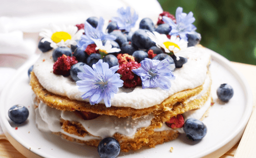 Layer the cream on the cake and place the next layer. Decorate with fresh berries and let it rest in the fridge for at least 2 hours.